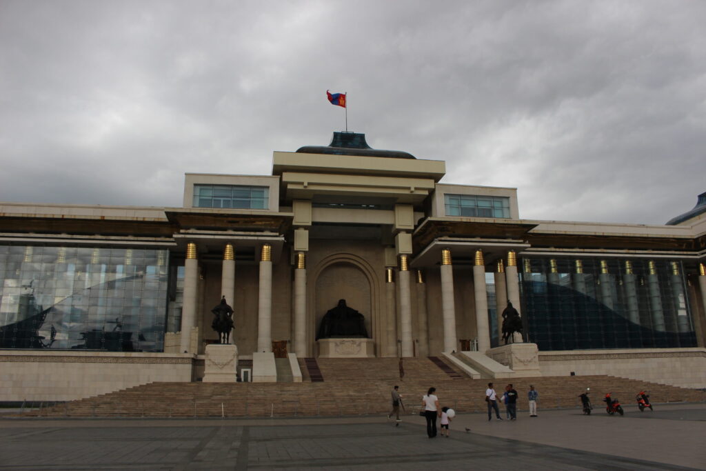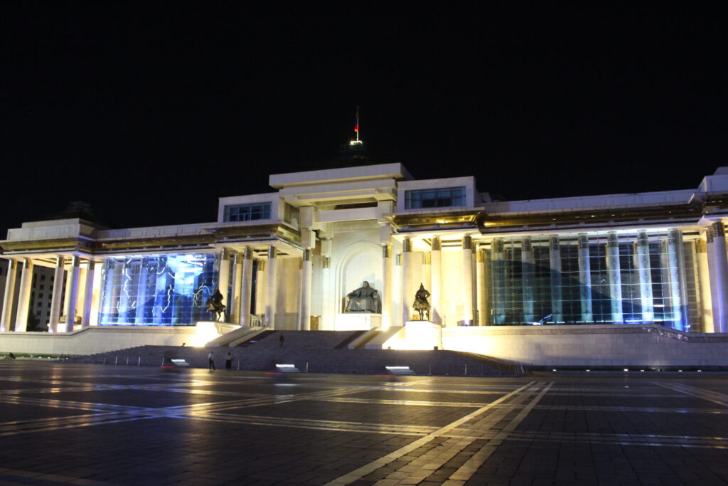 VIVANTの撮影場所であり、モンゴルの象徴的な場所の一つでもあります。正面にある建物は国会議事堂で、広場中央にはモンゴルの英雄であるスフバートルの騎馬像が鎮座しています。