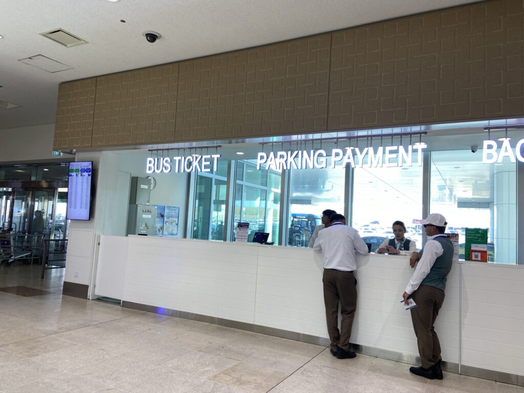 到着ロビーを左側に進むと、バスのチケット売り場があります。