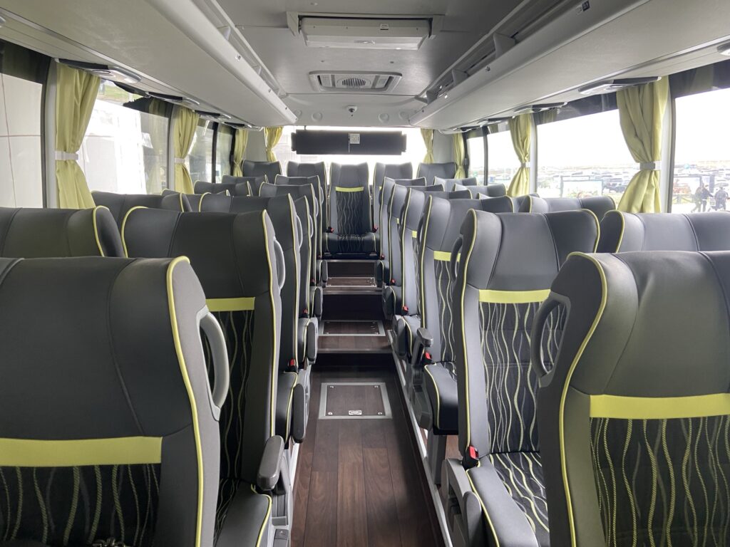 車内はこんな感じ。座席はクッション性もあり、結構快適でした。記憶が曖昧ですが、USBポートもあったような。