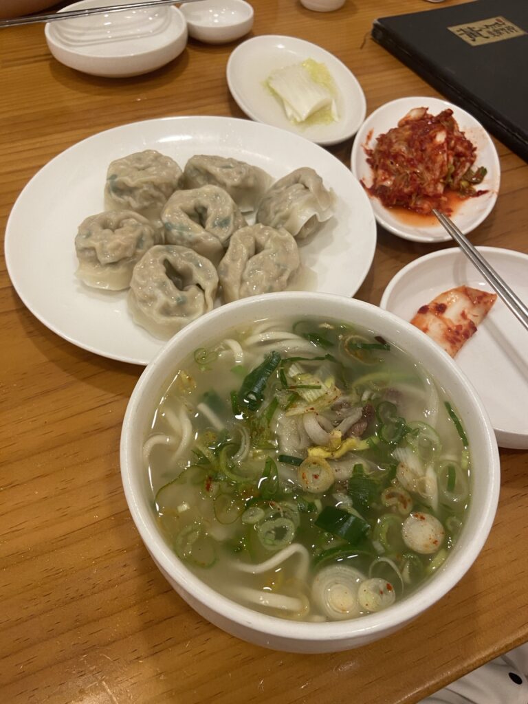 2日目昼食:カルグクス(牛骨手打ちうどん)、マンドゥ(韓国式餃子)