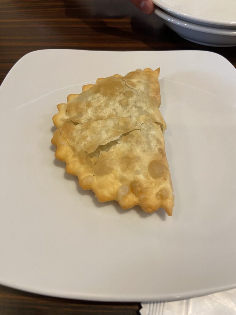 こちらは「ゲリーンホーショール」羊肉餡を包んだ揚げ餃子、というと分かりやすいと思います。出来立て熱々の状態で提供され、皮はパリパリ、噛むと羊餡の肉汁が出てきてジューシーで美味しかったです!