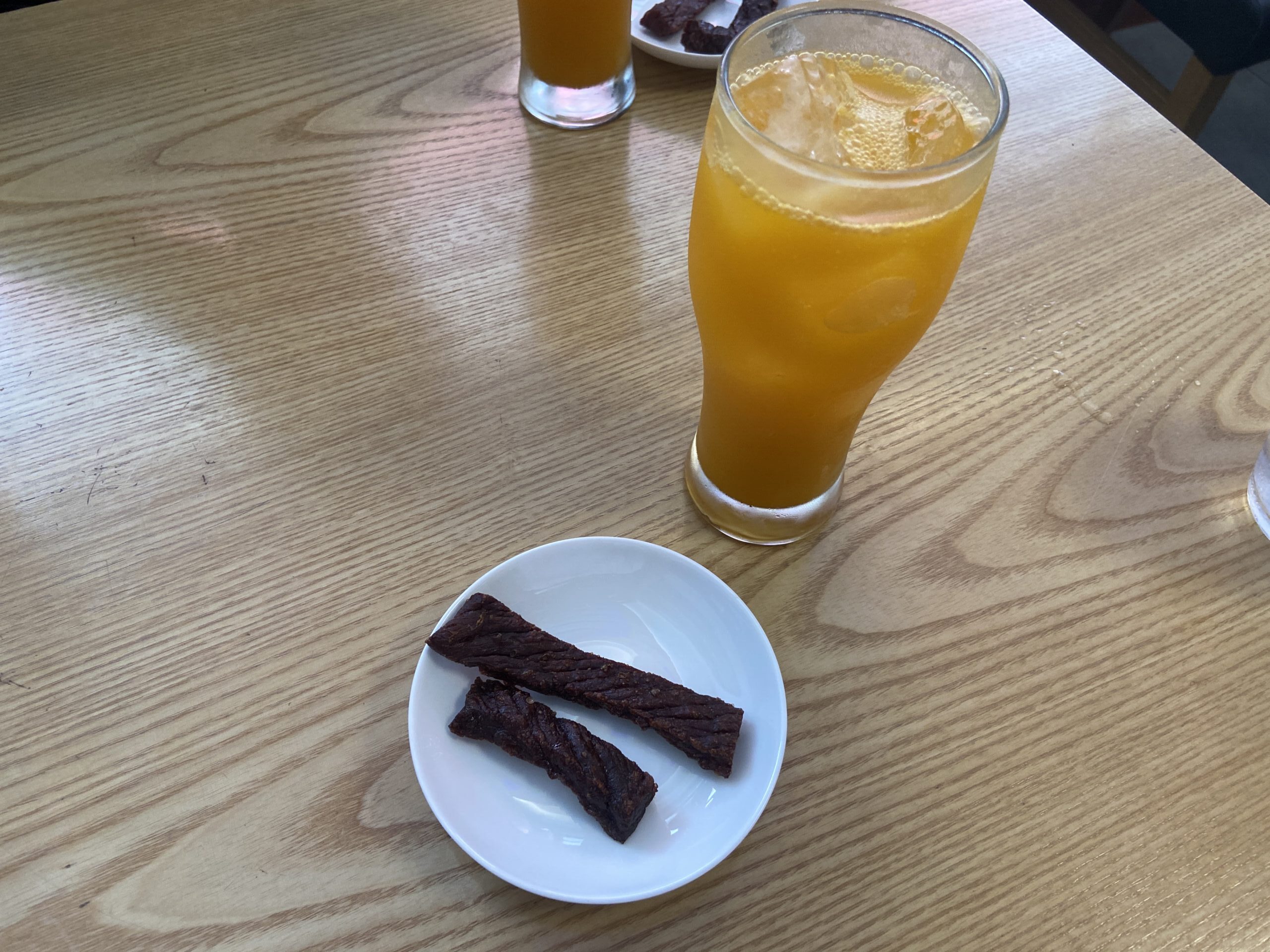 ちなみに、ビーフジャーキーは店内で販売されているので気に入ったら買って帰ることができます!味付けは4種類ほどあったかな?