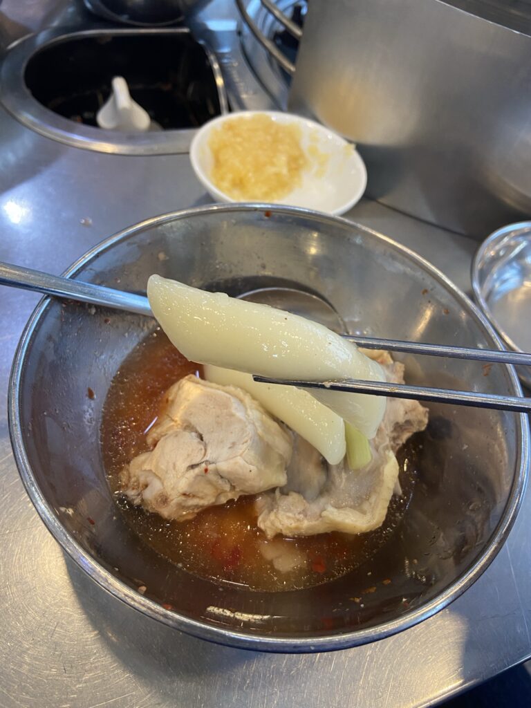 タレをつけていないので薄味かな、と思ったら、全くそんなことはなく!味付けは塩のみで非常にシンプルなのですが、長時間煮込まれた鶏の旨みがこれでもかというほどスープに染み出していてめちゃくちゃ美味しいです。