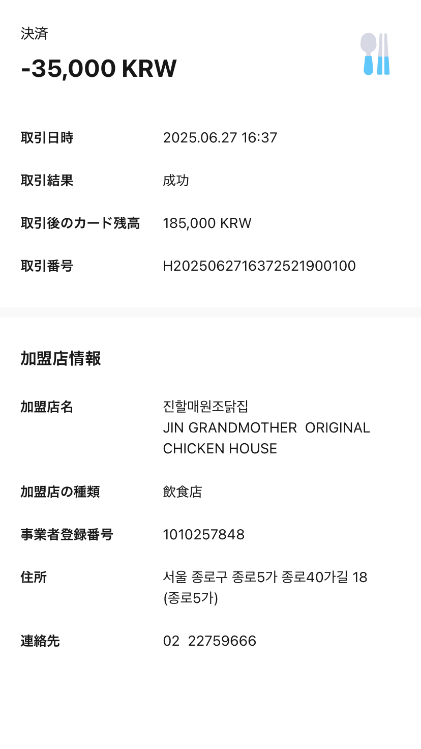 なお、支払いはWOWPASSで行いました。WOWPASSアプリから、ウォンで支払った金額と、日本円の換算金額が見れるので便利です。